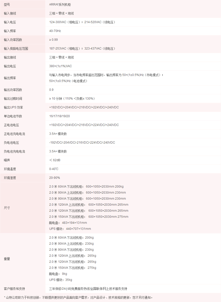 3A3 Pro UPS一個(gè)UPS模塊體積為440×700×131mm(3U),一個(gè)標(biāo)準(zhǔn)2米高的UPS機(jī)柜最多可以安裝10個(gè)UPS模塊,總?cè)萘窟_(dá)到150KVA,而且配電盤(pán)也含在其中,再配上與UPS機(jī)柜一般大小的電池柜,便可組成完整的UPS供電系統(tǒng)。由于UPS機(jī)柜和電池柜都采用標(biāo)準(zhǔn)機(jī)柜,與大多數(shù)機(jī)房的負(fù)載設(shè)備機(jī)柜一致,因此可以與負(fù)載并排放置而無(wú)需專(zhuān)用的UPS配電房,不僅美觀而且能為客戶(hù)最大限度地節(jié)省安裝空間。